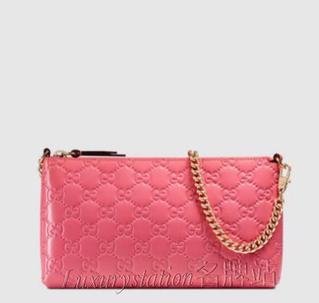 全新Gucci 428449 Wallet On Chain 桃紅牛皮銀包錬袋
