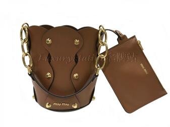 全新Miumiu 5BE031 Calfskin Studded Two Way Style Bucket